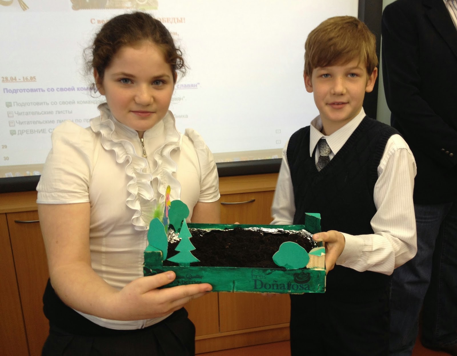 | Alunos apresentando-nos o sistema educacional russo. |